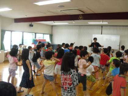 保育園の先生の提案で,「猛獣がりにいこうよ」ゲームと,「やまびこさん」ゲームをして遊びました。最後に,年長組の友だちから歌の贈り物をいただきました。