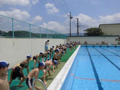 プール学習 公開日 2015/06/25 更新日 2015/06/25 3年生の部屋 待ちに待ったプール学習が始まりました。プール学習にふさわしい晴天の下,子どもたちの元気な声が響いていました。中学年は「できるだけ長い距離を泳ごう。」というめあてで学習しています。しっかりとがんばってくださいね。