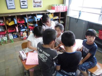 総合の「ツバメの観察」の学習では,まとめの段階に入っています。今日はグループを決めて,新聞の構成について話し合いました。みんなで協力して,いい新聞を作ってくださいね。
