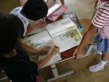 毎日の宿題で音読をがんばっている子どもたち。前に「はなのみち」の音読発表会を行った時には,とても楽しく学習ができました。