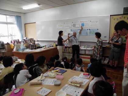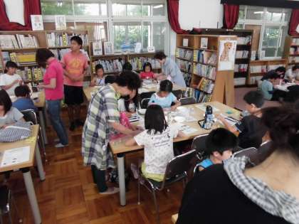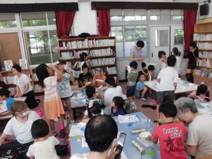 7月のふれあい活動として,地域の女性会の皆様を中心に,エコロジーセンターの天野先生を講師に迎えて,万華鏡づくりを行いました。全校から70名近い子どもたちが図書室に集まり,先生たちに教えていただきながら万華鏡を作りました。同じ材料で作っているので,見た目は同じような万華鏡ですが,のぞいてみると子ども一人一人の作品は,それぞれ違っていて,どれもきれいな模様を見ることができました。お互いの万華鏡を見せ合う子どもたちの,うれしそうな笑顔もとても素敵でした。