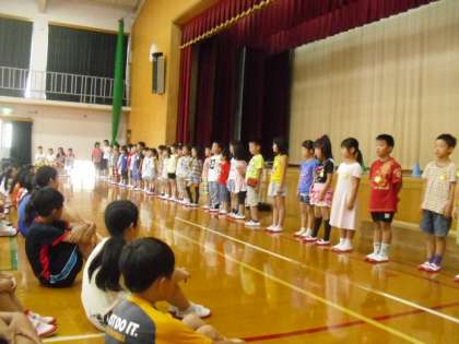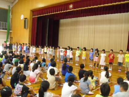 「あいうえおであそぼう」の音読をしました。少し早めに体育館に集合して,声だしをしてから本番に臨みました。
