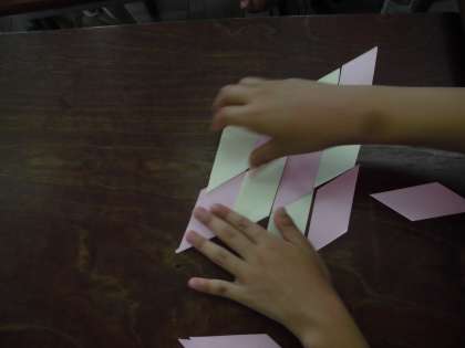 しきつめたものが,「違う形になったよ。」とか「台形のしきつめから平行四辺形が見つかりました。」など,様々な発見がありました。