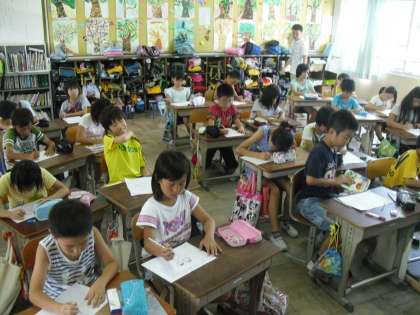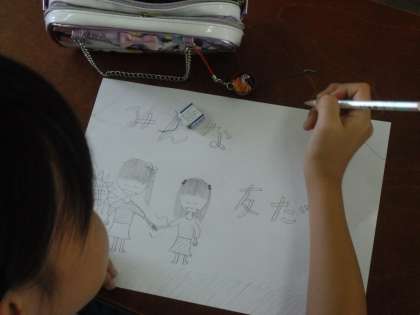下書きを見ていると,手をつないでいる絵や地球の絵を描いている子どもがたくさんいて,しっかり人権について考えてくれていると感心しました。