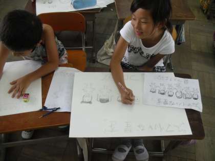 今日の図工は人権ポスターの下書きに取りかかりました。