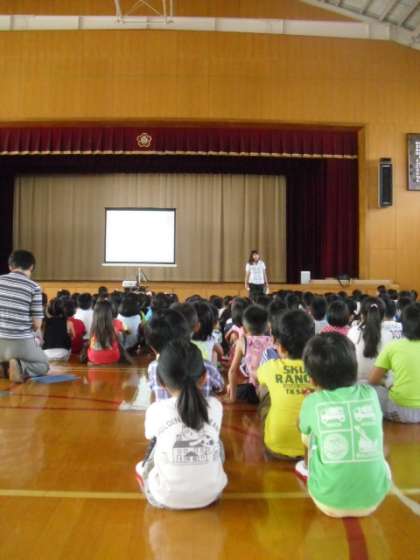 朝会では,校長先生が,「夢をもつ」ということについて話をされました。小学生からの夢をかなえた4人の話でした。この4人は,好きなことや得意なことだけでなく,学校での学習もしっかり頑張っていたのだそうです。お家でも話を聞いてみてください。
