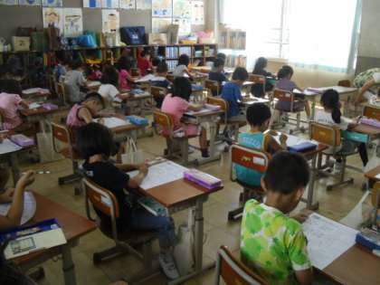 教室では,大掃除をして,夏休みの宿題を提出したり,作品を紹介しあったりしました。夏休みの宿題の確かめテストも行いました。