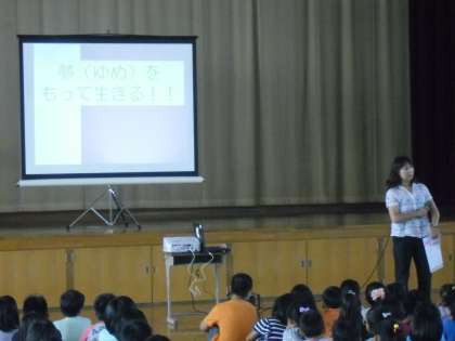 今日はまず朝会があり,校長先生から「将来の夢」についてのお話をしていただきました。