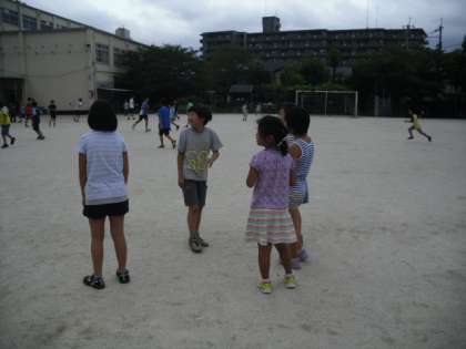 夏休みも明け,学校では子どもたちの元気な声が響き渡っています。今日の中間休みはみんな遊びをしました。ふえおにをして,元気に走り回ります。