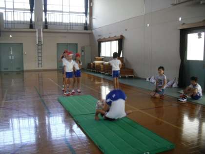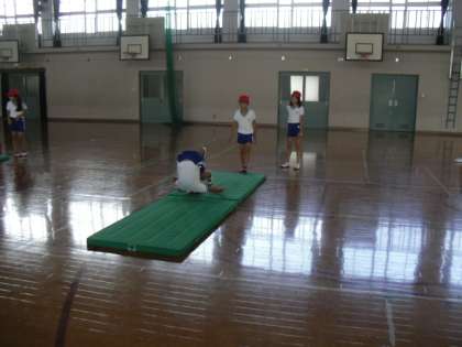 今日から,体育ではマット運動の学習に入りました。3年生の学習では,「できる技を連続で回ることに挑戦する」,そして「少し頑張ればできそうな技に挑戦する」ことをねらいとしています。マット運動が得意な児童もたくさんいました。