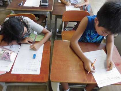 毎日,そうじの後のステップタイムの時間に,算数の練習問題をしています。