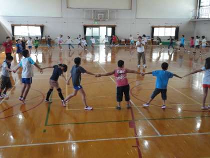 キャンプファイヤーで行うフォークダンスの練習をしました