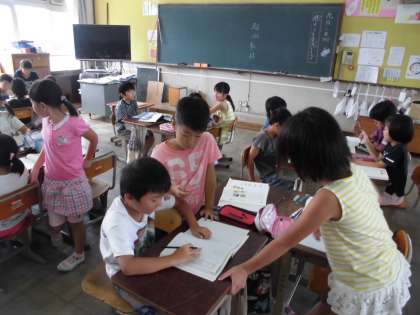 今日は「もうすぐ雨に」の感想をグループで交流しました。同じ物語文を読んでも,人によって感じ方が同じところや違うところがあることに気付きました。徐々に読書の秋が深まってくると思います。素敵な物語に出会えるといいですね。