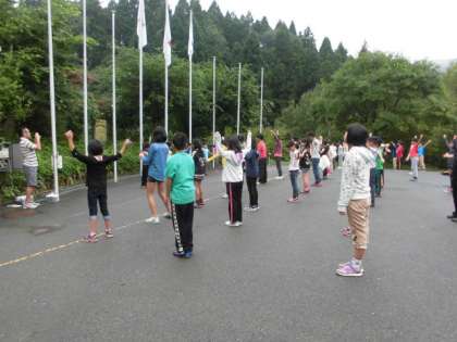9月3日、山の家の最終日です。朝の集いを終えました。みんな元気です。明け方からまた雨。雨の中でも心は晴れやかに友情を深める活動を続けます。