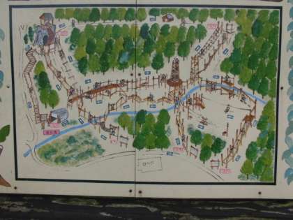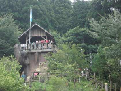 花背山の家には、冒険の森と呼ばれるアスレチック施設があります。雨は止み、晴れ間が見えてきました。でも、雨にぬれた施設は、大変滑ります。残念ながら全施設を回ることはできず、大樹くんにだけ登りました。上から「ここの写真をホームページに乗せて〜。」と叫んでいましたので、ご要望に応じて掲載します。