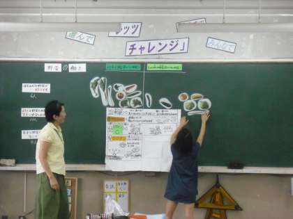 野菜を「緑黄色野菜」と「色の薄い野菜」とに分類する作業では,外は濃い色でも中の色が薄ければ緑黄色野菜ではないと学習しました。