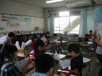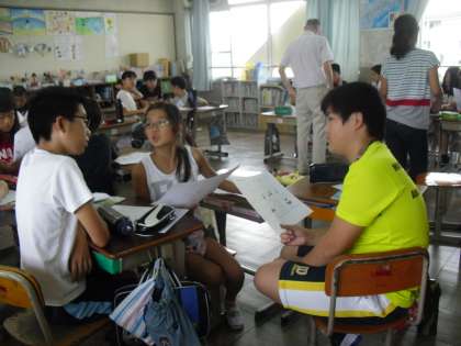 今日は,ポール先生の夏休みの出来事を紹介してもらったり,自分達の夏休みの出来事を英語で書いたり,紹介したりました。