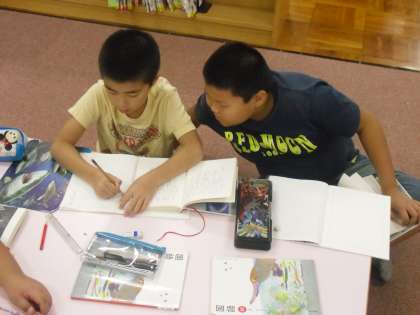 今日は図書室で自分たちの課題に合った本を探し,班で活動しました。