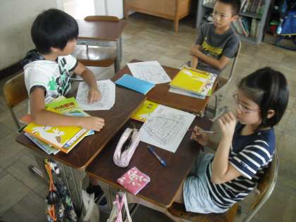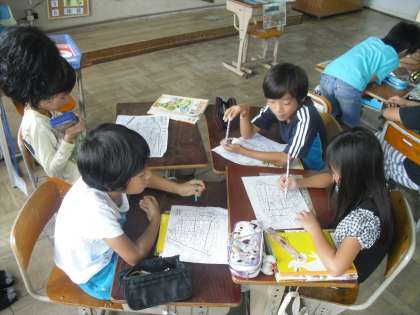 子どもたちで事前に校区内を調べていたものを使用し,安全マップを作成しました。