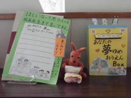 「あなたの夢応えんカード」を書いて,BOXに入れましょう。松岡校長先生手作りの豪華しおりがもらえます。なぜ,その夢(目標)を思い描いたのか。わけを教えてくださいね。わけを知って,あなたのことをもっともっと応援したいと思っています。