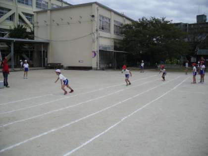 運動会が近づいてきました。3年生の体育の授業では,運動会の練習をしています。今日は,80m走と棒引きの練習を行いました。