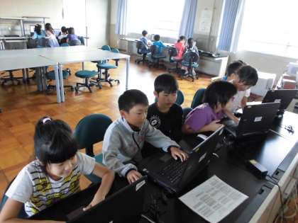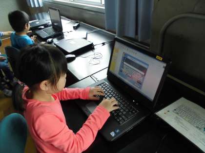 3年生はローマ字の学習をしています。今日は,今までの学習を利用して,パソコン入力の練習をしました。初めは,決められた指で入力することに戸惑いがあったようですが,徐々に慣れてきて「見ないでも打てるようになった!」という声も聞かれました。自由にパソコン入力ができるようになって,有効にパソコンが活用できればいいですね。