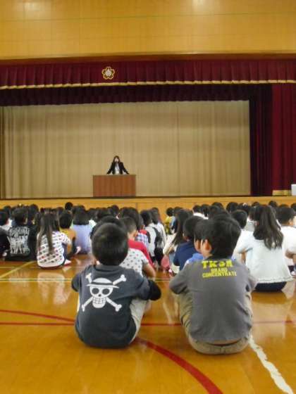 後期がスタートしました。始業式では,校長先生から,向島あいうえおについてや,夢を持つこと、後期の目標についての話がありました。
