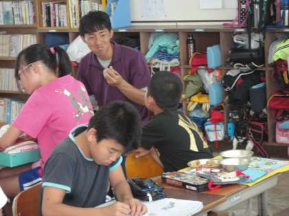西村先生がお休みの間、藤上先生がおいでになりました。給食をいっしょにいただきました。