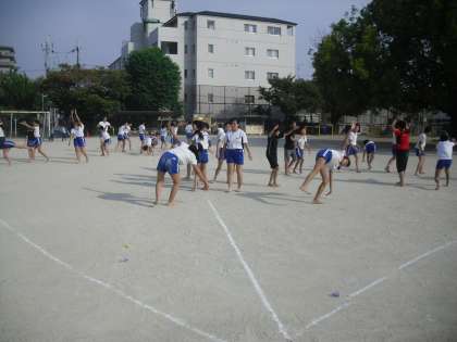 体操服も,体も砂まみれになりながら,一生懸命頑張る子ども達。
