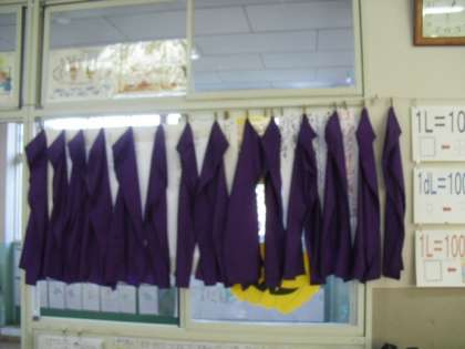 みんなで自分の頭巾を自分で洗いました。
