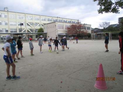 学習発表会の練習で体育館が使えないので,体育は,運動場でサッカーです。