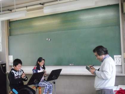 それぞれのパートに分かれ,「タンギングとあまり元気過ぎない音色」に気を付けながら家路のリコーダーテストをしました。
