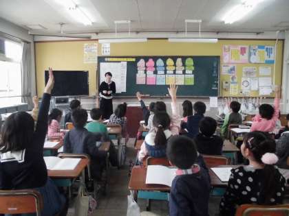 堀井先生に,食の指導をしていただきました。今回は,「おやつ」について考える授業でした。自分の生活を振り返り,どんなものを食べているか「あまいもの食べすぎてる!」「体にいいおやつも食べていた」など,様々な感想がありました。おやつは,食べるもの,時間,量を考え,上手につきあっていくことが大切ということを学びました。