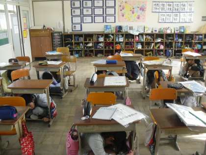 中間休み,シェイクアウト訓練がありました。