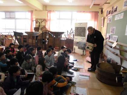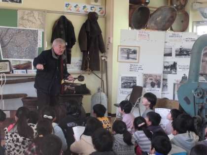 総合の学習では,昔の道具調べを行っています。今,使っている道具も,昔は形が違っていたり,素材が違っていたりしました。昔のアイロンを見て形が全く違っていたので