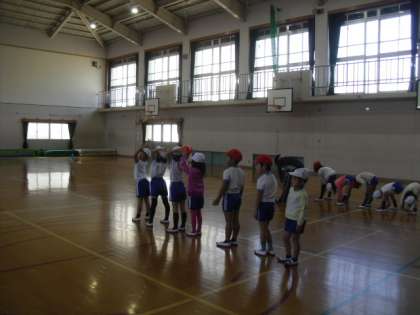 はじめは4人から挑戦し,今日は全員で輪になり,挑戦しました。