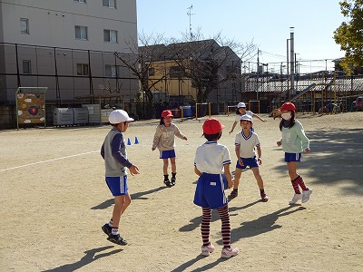 2年生のパスゲームは今日が最終回でした。準備からゲームを始めるまでの流れもスムーズになり、ゲームも点数が取れるように工夫して動けるようになりました。これからも、友だちのいいところをたくさん吸収して、協力する楽しさを感じていってほしいと思います。