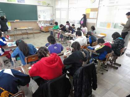 昨日、小小連携(藤の木小学校との連携)の取組の一環として、5−1で公開授業を行いました。「輪投げ」という小単元で、論理的思考を必要とする単元です
