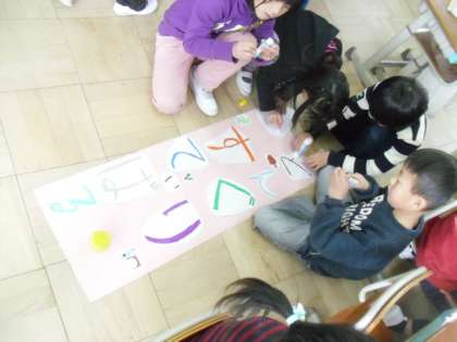 体育館の前に貼る看板や招待状,飾りを作ったり,司会やはじめの言葉,おわりの言葉の練習も一生懸命していました。