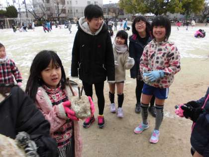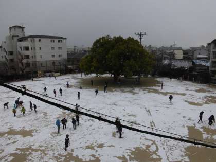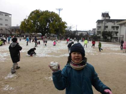 今年初めて,運動場に雪が積もりました。教頭先生の「外で遊んでもいいですよ。」という放送で,みんなうれしそうに運動場に飛び出しました。さすが,子どもは風の子です。このまま風邪をひかずに頑張りましょう!