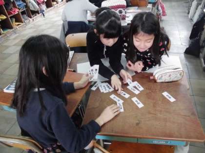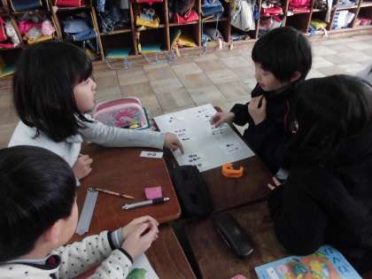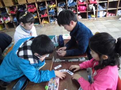 国語では「言葉を分類する」という学習をしています。班のメンバーで相談しながら,活動することができました。「動きを表す言葉」「様子を表す言葉」「物や事を表す言葉」の3つの分類の仕方,しっかり覚えてね♪