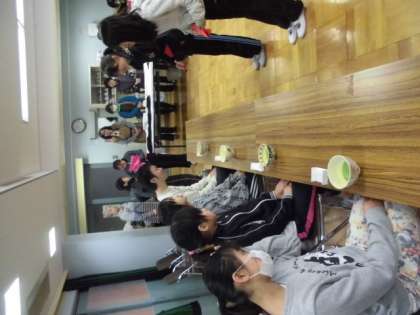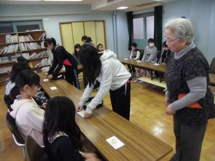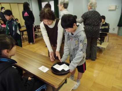 毎年地域の女性会の皆様にお世話になっている,ふれあい茶道教室を今年度も実施することができました。部屋に入る時の礼の仕方からお菓子,お抹茶の頂き方まで,いろいろたくさんのことを教わりました。お腹に力を入れて,背筋をピーンと伸ばすこと,感謝の気持ちを忘れないことなど,日常生活でも実践できることが多くあります。参加した人は初めは慣れない様子でしたが,何年も続けて参加している高学年の人は,とても落ち着いて実践できていました。