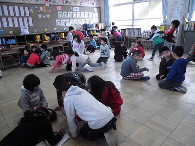 生活科は、1年生に昔遊びを教えてあげる学習が今日から始まりました。去年自分たちが遊んだこまやかるた、けん玉などを1年生にうまく紹介して遊べるようになってもらおうというものです。今日は、さっそくグループに分かれ、説明の仕方を考えました。またみんなで協力して、進めていってほしいと思います。