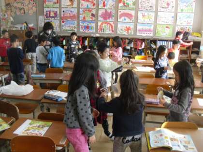 すてきな絵を描いて,タコ糸を通し,上手に回るか確かめをして・・・昨年してもらったことを思い出して,今度は自分がしてあげようと,一生懸命作っていました。