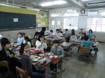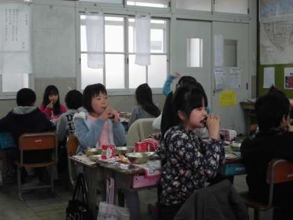 今日の給食は,節分に合わせてセルフおにぎりが出ました。クラスでも南南東に向いておにぎりを食べている児童がたくさんいました。どのような願い事をしたのでしょうね?