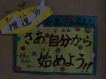 さあ今日から新しい学年です。校長先生も,「向島小の子どもを推進力のあるたくましい子どもに育てたい」という自分の夢に向かってがんばっていきたいと思っています。」