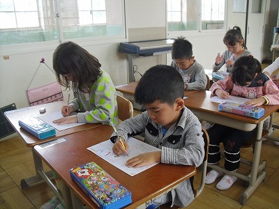 今日の宿題はプリントの裏面です。慣れるまでは時間がかかって大変なものです。丁寧に正しい字が書けるように、おうちでも励ましの言葉をかけてあげてください。