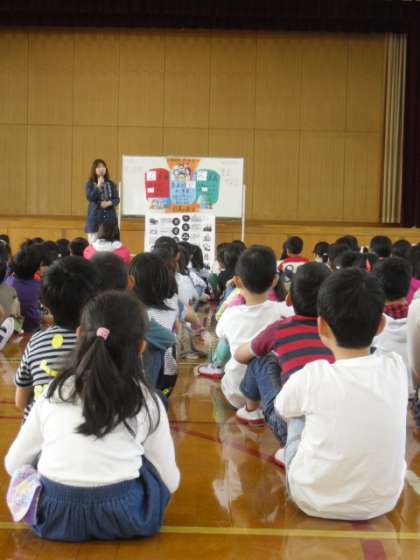 今日の朝会では,委員会の委員長さんと,3年生以上のクラス代表さんの決意表明でした。