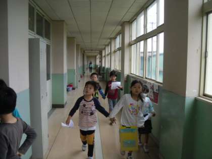 少し緊張した顔で,教室を出発した2年生のみんなでしたが,