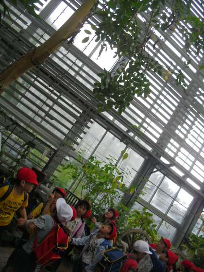 1年 春の遠足 その2 公開日 2016/05/11 更新日 2016/05/11 1年生の部屋 温室での様子です。見たことの無いような草花に興味津々の子どもたちでした♪バナナの木や,パパイアの木など,子どもたちが知っている木を見た瞬間,歓声が上がりました。出てきた後,「もう一度入りたい!」という感想がたくさんでした☆